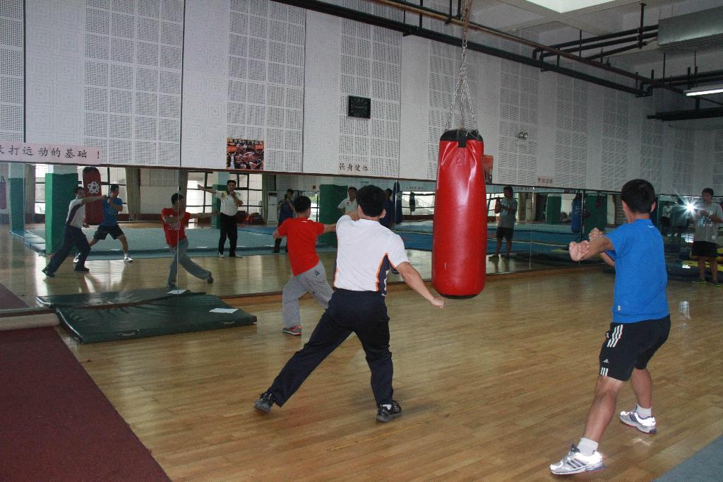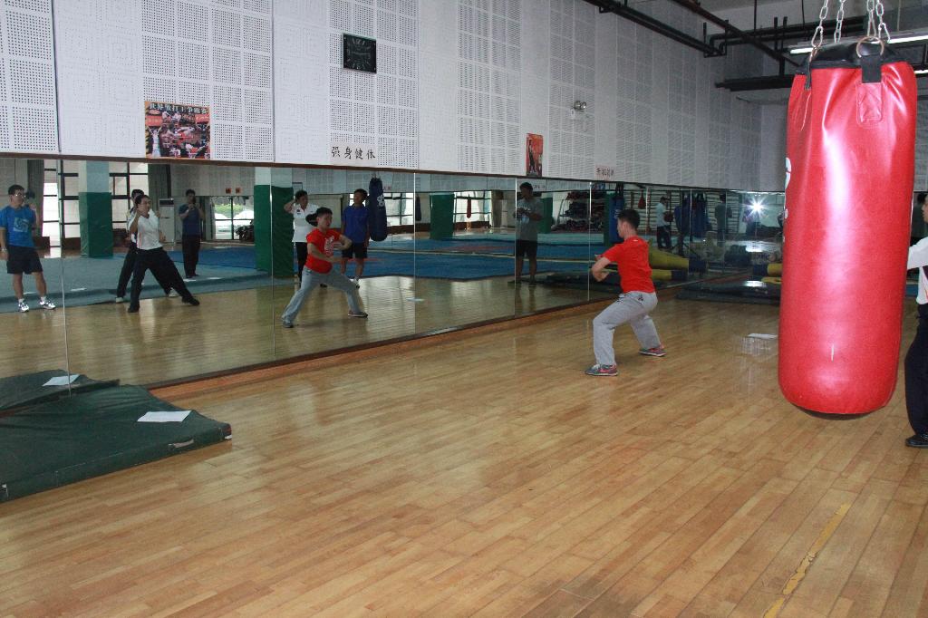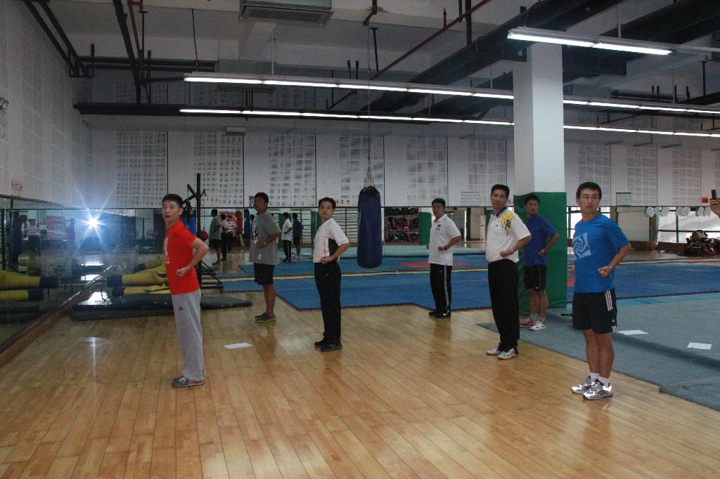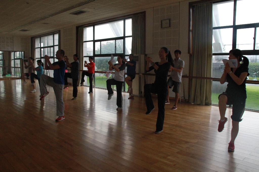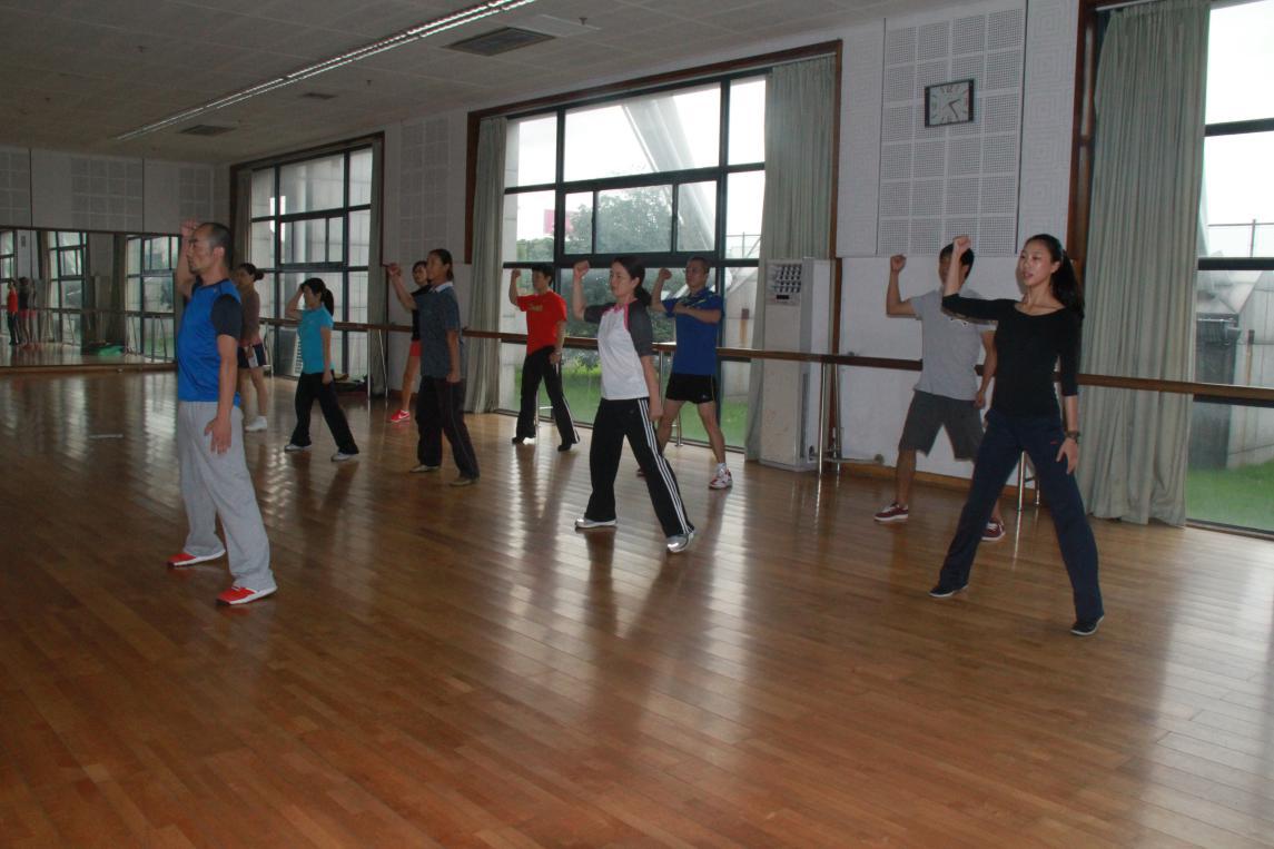 首先,叶东惠老师代表部门明确了此次教研活动的重要性,要求全体教师“人人参与、认真参与”,从思想上达成共识。姚智勇老师从项目的特点、功能、目标等方面介绍了武术和健美操在我校开展的可行性、必要性、实效性。从武术、健美操进行教学改革,特别是教考分离的实施的介绍,以及对往年武术与健美操考核成绩比较分析,进一步明确了教学过程中“教”与“学”的密切相关性。然后将全体教师分组进行实践学习与演练。在散打房,以担任男生班为主体的男教师,在应昌达老师的带领下对青年防卫拳的整个套路,逐招、逐式的进行动作演练、讲解、规范。从攻防演练、到实战应用、再到每一动作的发力点,环环相套,最终明确了教学的关键点。在体育舞蹈房,以担任女生班为主体的女教师和部分男教师,在姚智勇老师的带领下,学习新的三套一级大众健身操,从每一动作的规格、协调、律动再到节奏,丝丝入扣,教师细致揣摩,认真练习,反复体会,伴随着动感的音乐,在轻松愉悦的气氛中,取得令人满意的效果。整个教研活动持续了近两个小时。