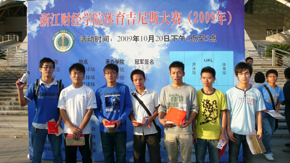 承办的浙江财经学院体育吉尼斯大赛在体育馆广场及风雨篮球场火热开赛。活动自下午一点正式开始,由全校十二个二级学院举办的十二个简单有趣的体育竞技游戏组成,全校学生均可随意参加。