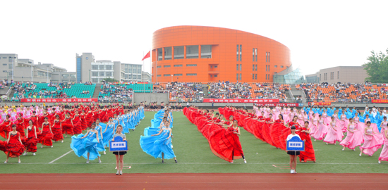 上午8时,各学院方阵依次入场,队员们身着五彩斑斓的服装,高喊整齐嘹亮的口号,迈着整齐的步伐进入田径场。各学院方阵在运动会前都进行了精心排练,各具特色的方阵表演彰显了各学院的精神风貌。