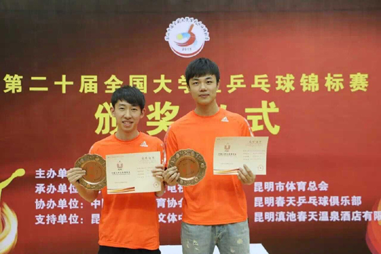 一份耕耘,一份收获。运动员赛前全力备战本次比赛,每天坚持3、4小时的集训,在乒乓球馆内挥汗如雨。赛场上,他们抱着强烈的荣誉感和责任感,敢打敢拼,其中,楼橙、陈镜宇的男子双打第三名更是我校在特招组中第一次登上领奖台,在全国第二十届大学生乒乓球锦标赛中取得了新突破。