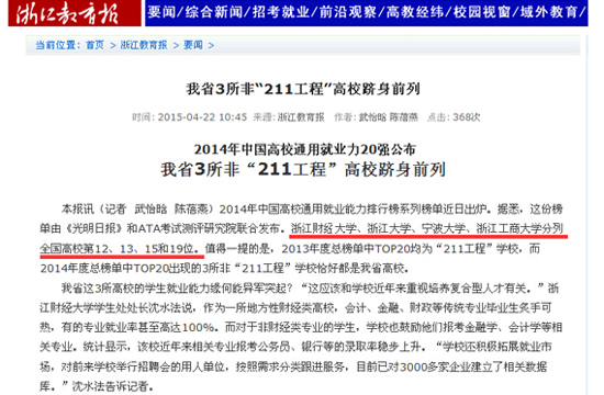 五、2014年毕业生通用就业能力名列浙江省高校第一位,全国高校第十二位