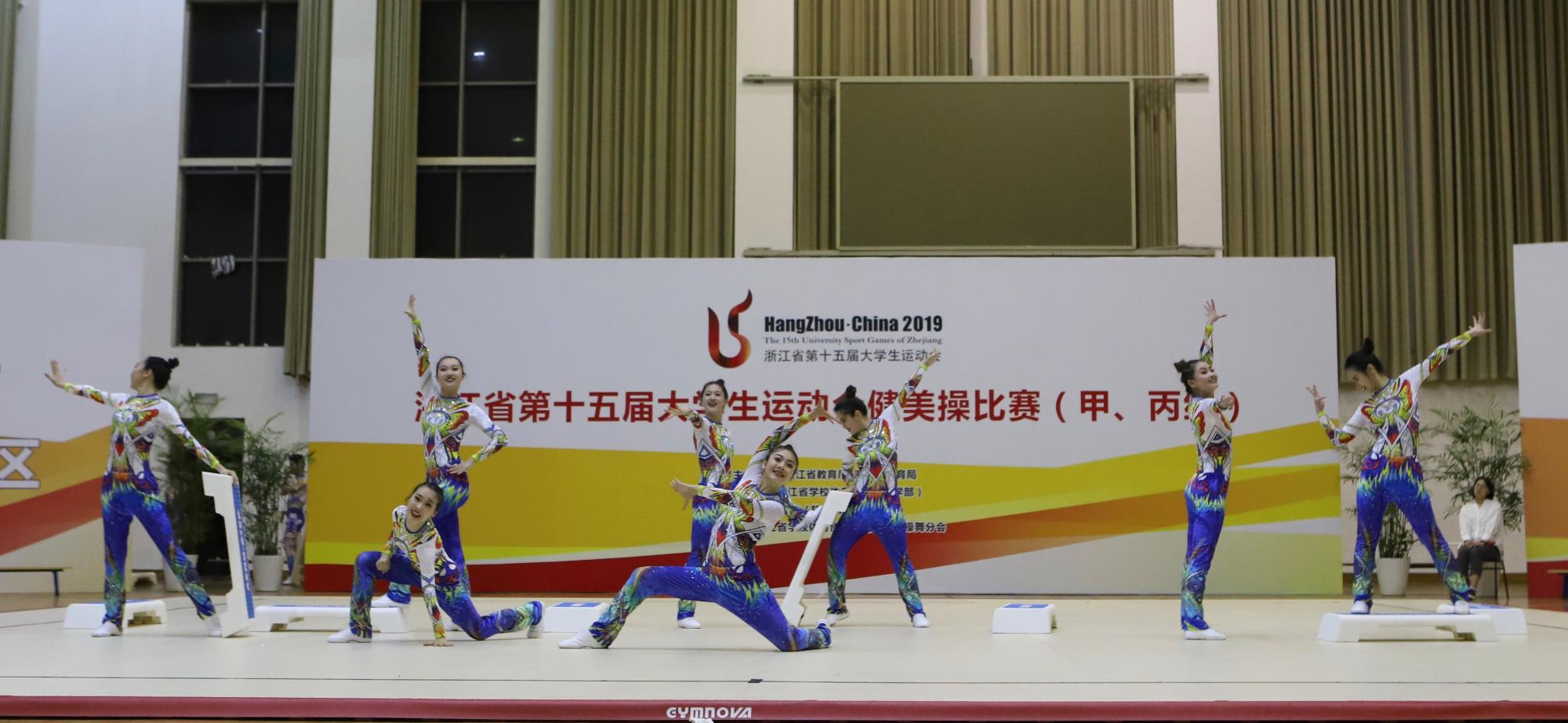 4月20日,浙江省第十五届大学生运动会健美操比赛在杭州师范大学下沙校区落下帷幕。我校健美操队在比赛中表现优异,喜获佳绩。