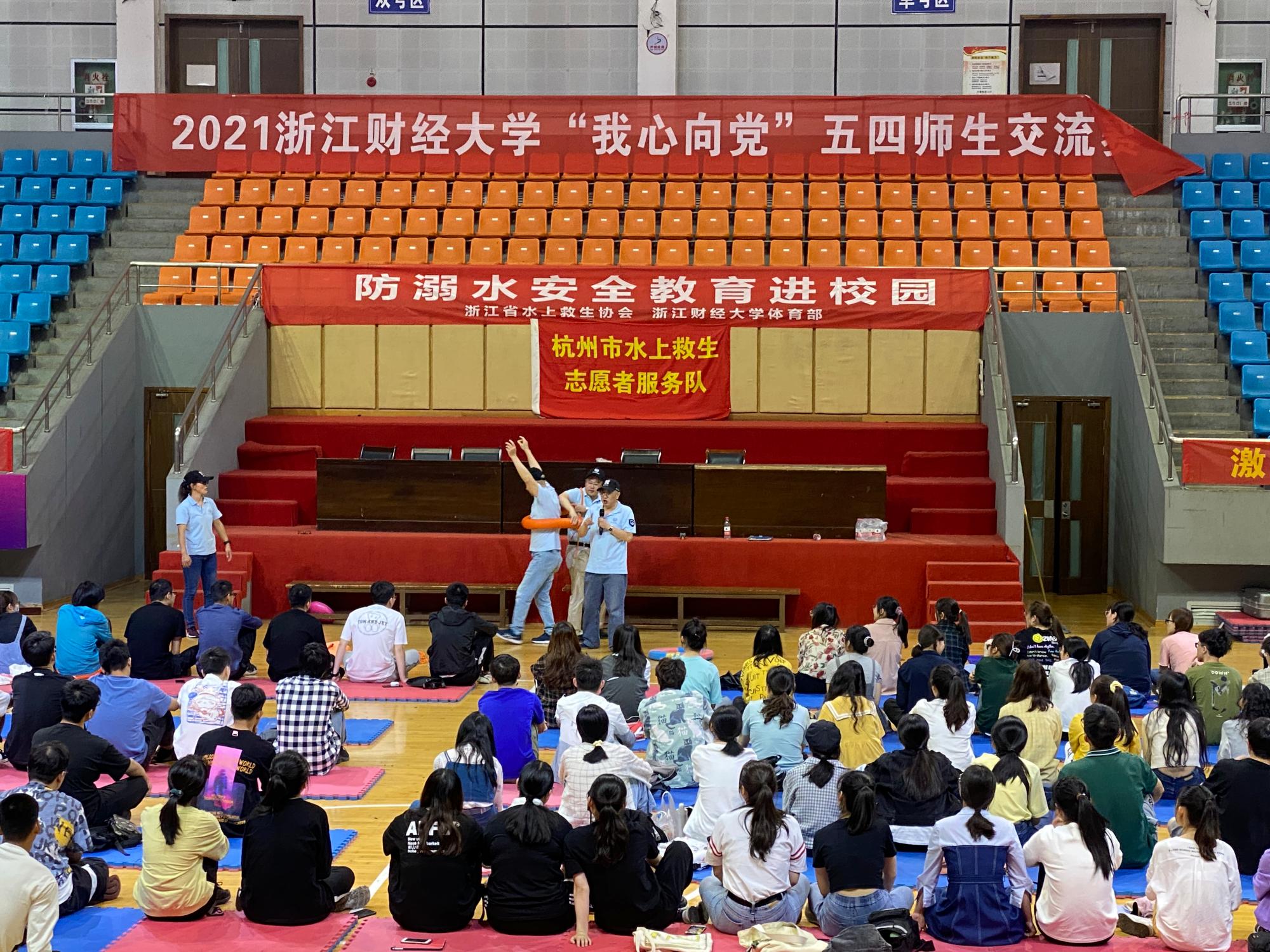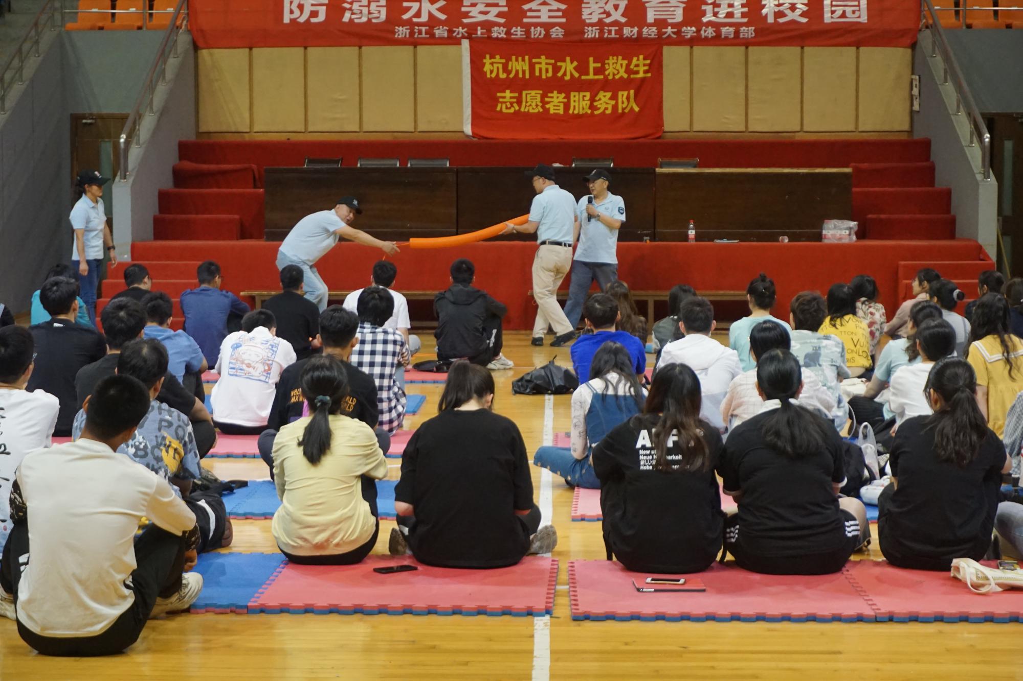 邀请杭州市水上救生志愿服务队到财大开展防溺水安全教育活动。