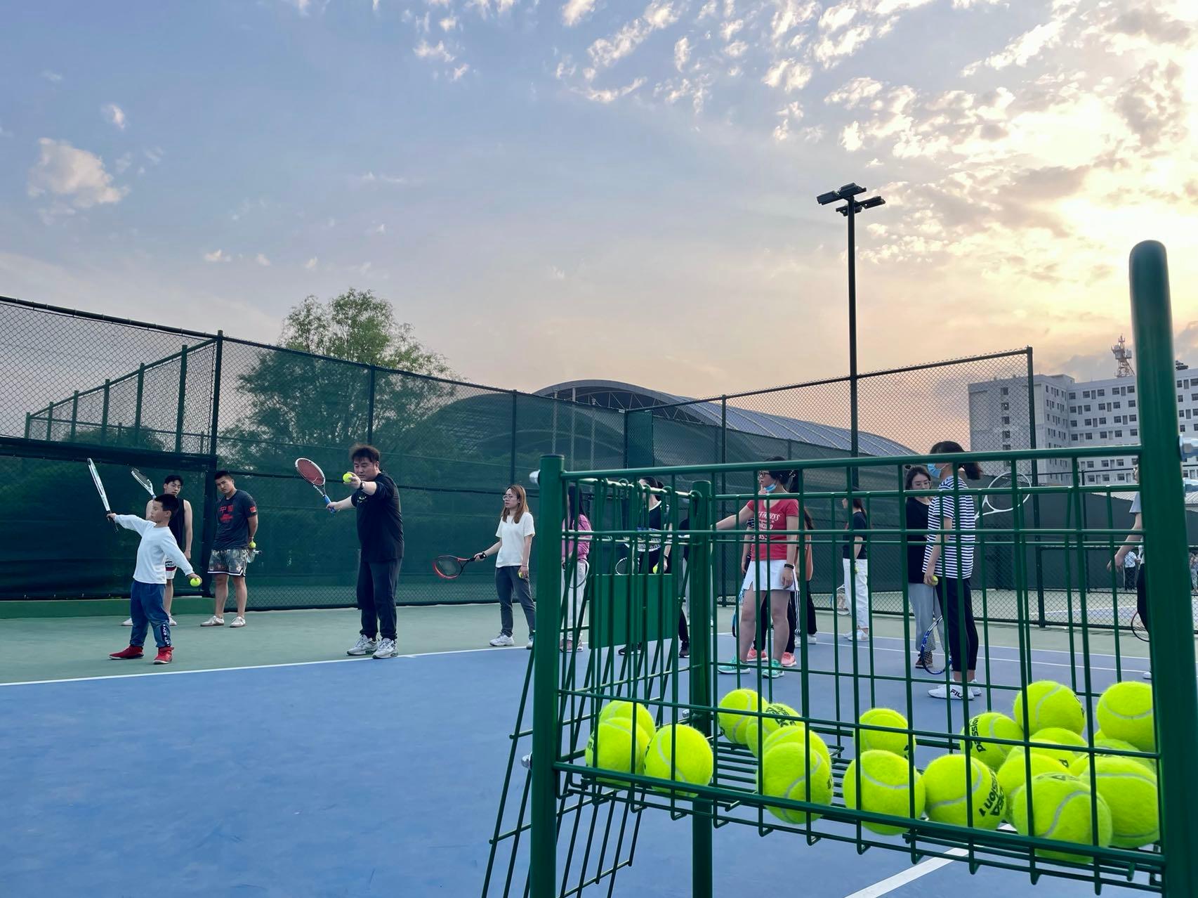 网球场热闹非凡,我校教职工网球培训班正式开课。本次网球培训由校工会、开车漫画
