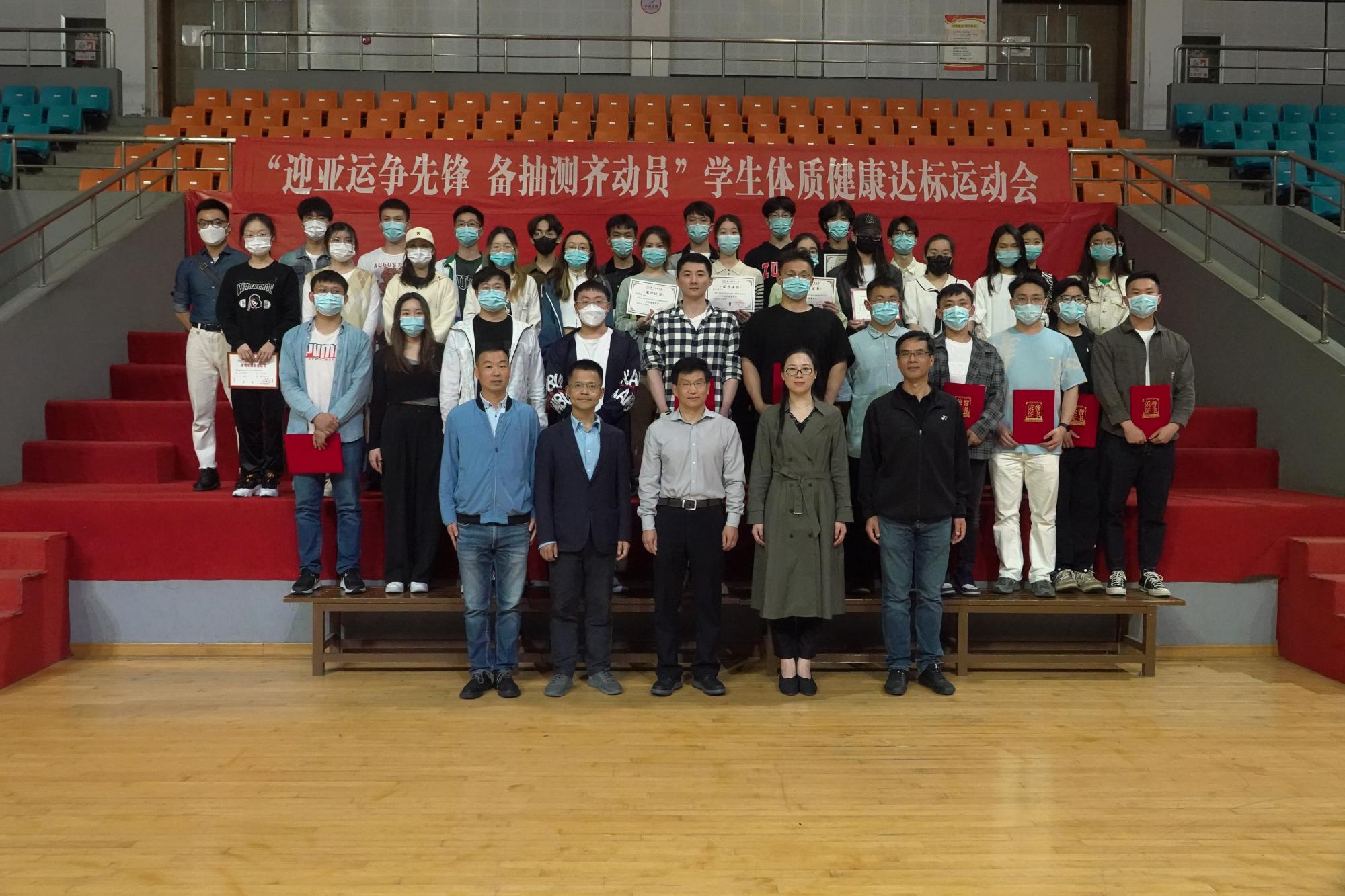 2022年学生体质健康达标运动会颁奖仪式在篮球馆举行。副校长董进才出席仪式并讲话。相关职能部门负责人、获奖单位及个人参加仪式,仪式由开车漫画