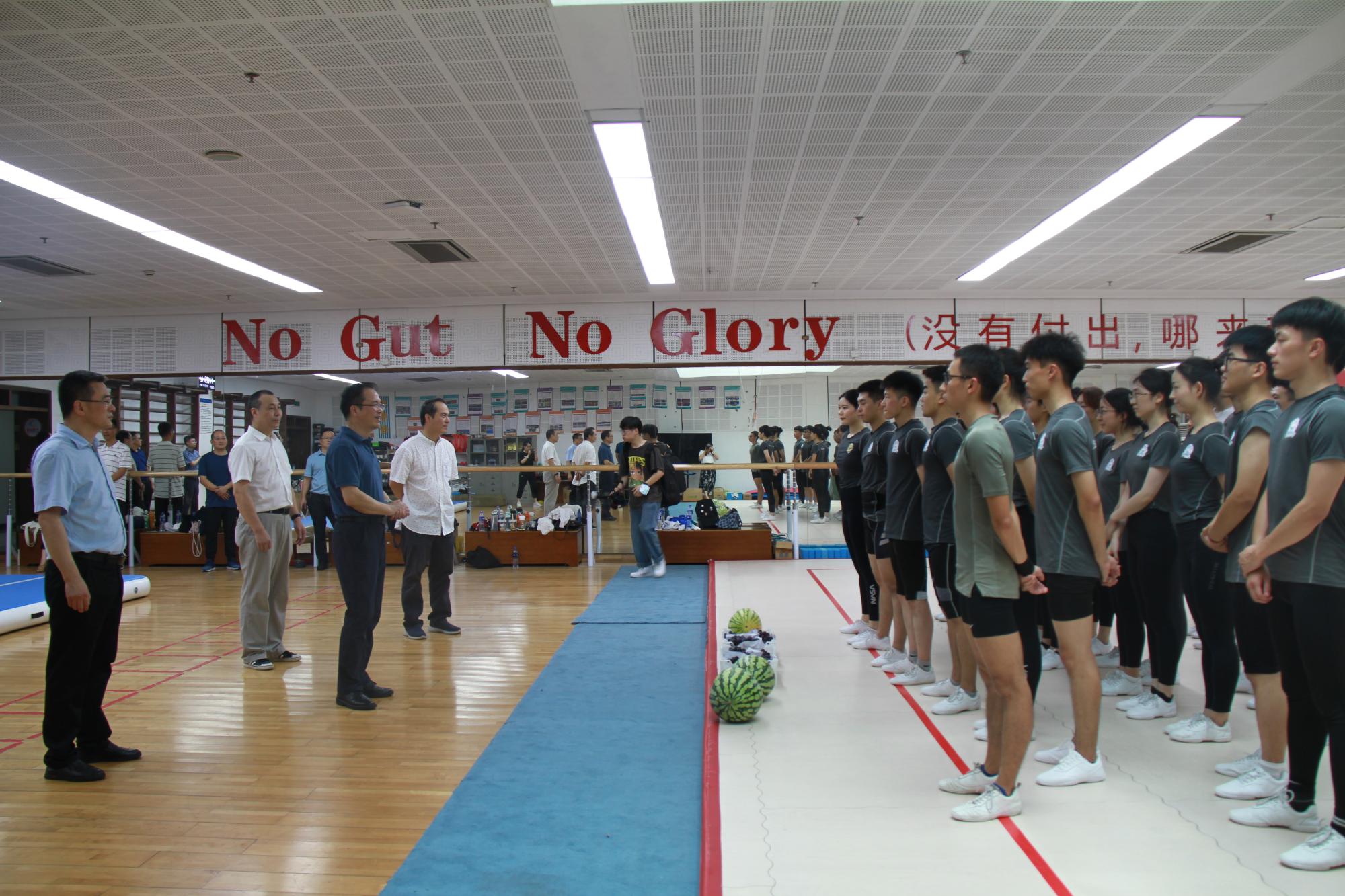 7月21日上午,校党委书记李金昌,党委副书记余建森,党委委员、副校长王奎泉、徐晓东等一行来到体育场馆看望慰问正在集训的运动队。