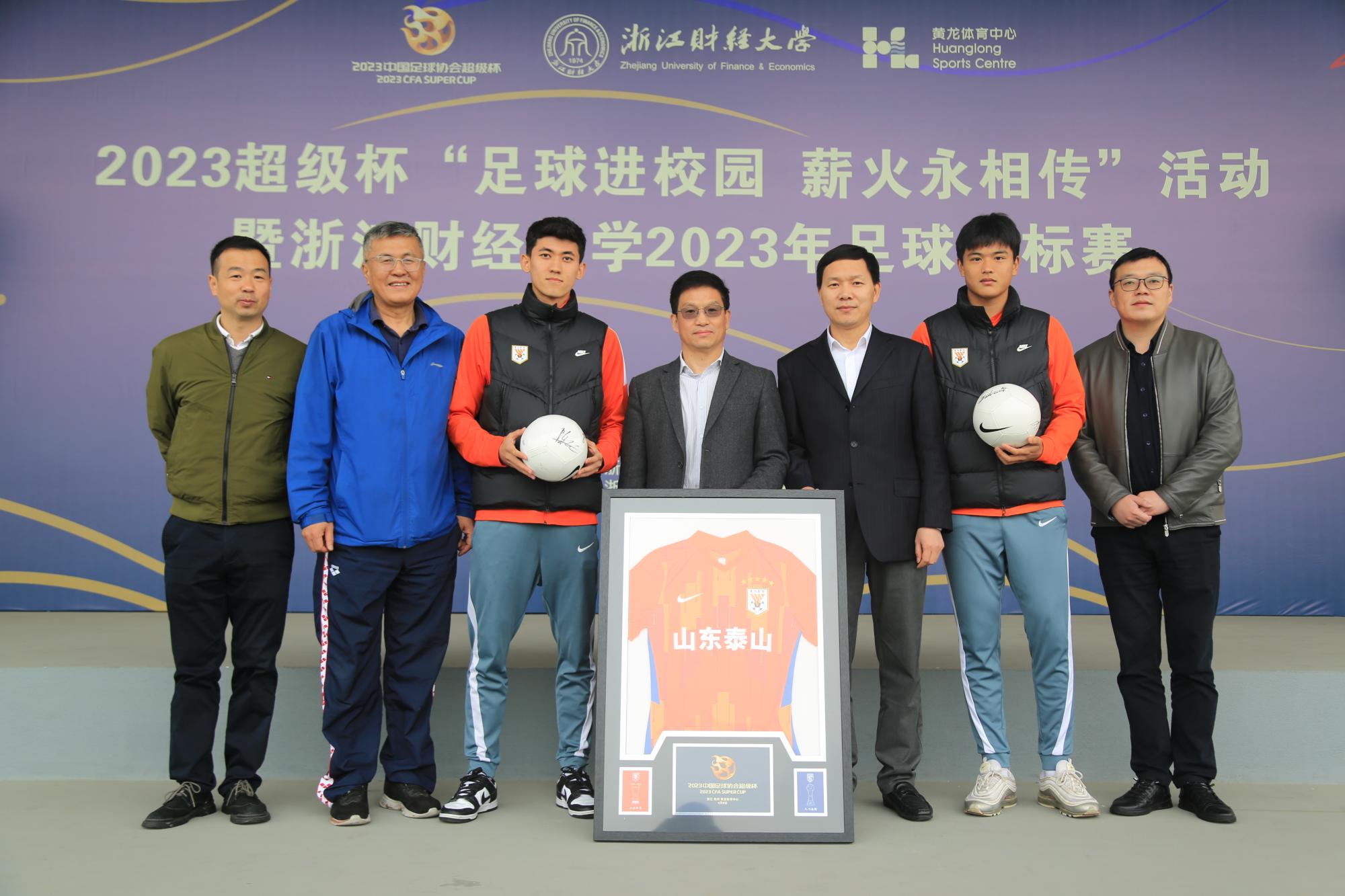 体育事业的重要组成部分。此次超级杯足球进校园活动,有利于拉近职业球员和大学生球员的距离,有助于促进竞技足球与校园足球及校园足球间的交流与发展,有益于浙财体育文化的对外推广。他勉励大家继承老一辈足球运动员的光荣传统,发扬永不放弃的足球精神,在足球锦标赛中展现浙财学子的风采。