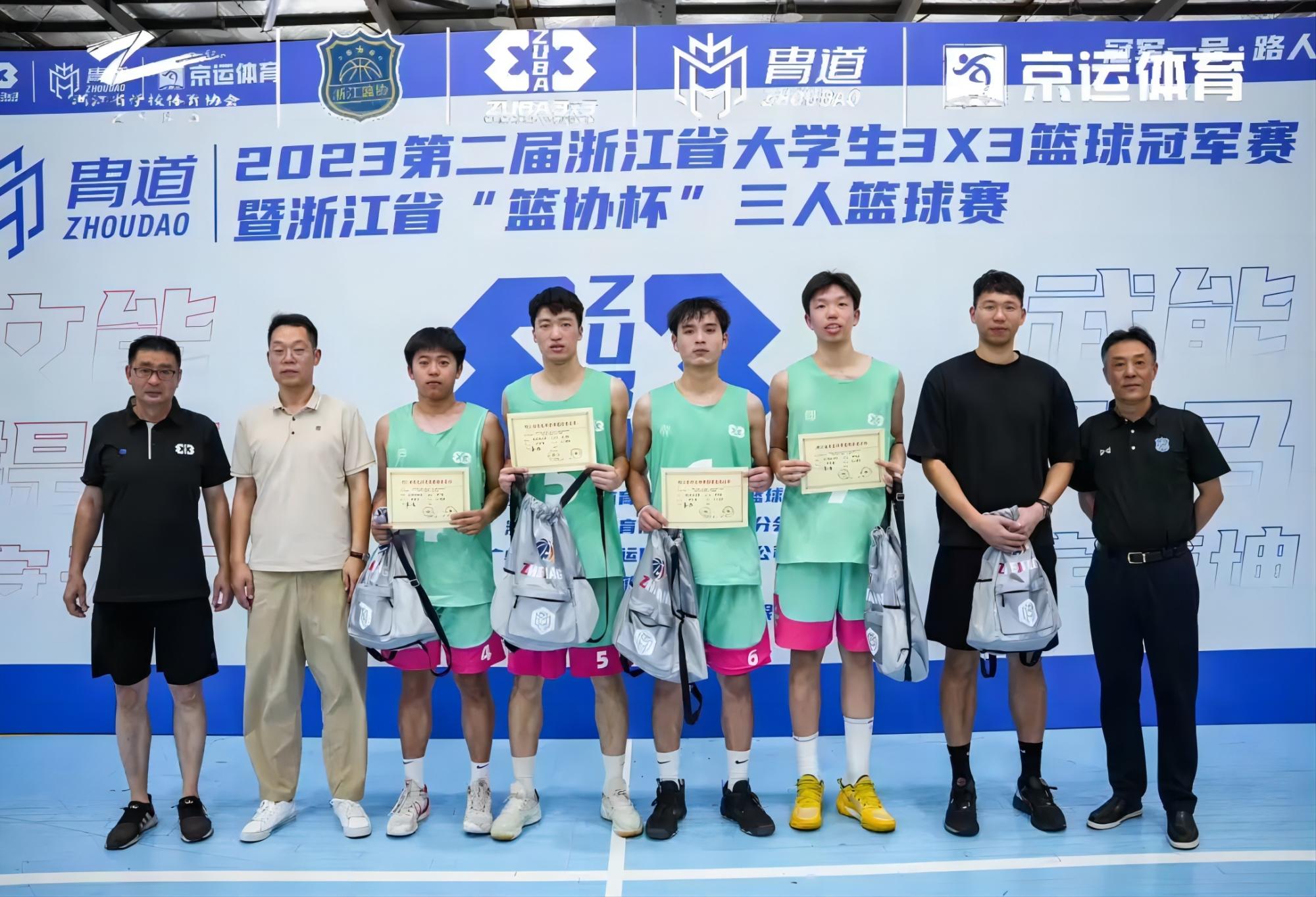 7月13日至14日,2023年第二届浙江省大学生3x3篮球赛在杭州举行。经过两天的激烈角逐,我校篮球队在姜卓成教练的指导下,勇夺男子组第一名,创造历史佳绩!