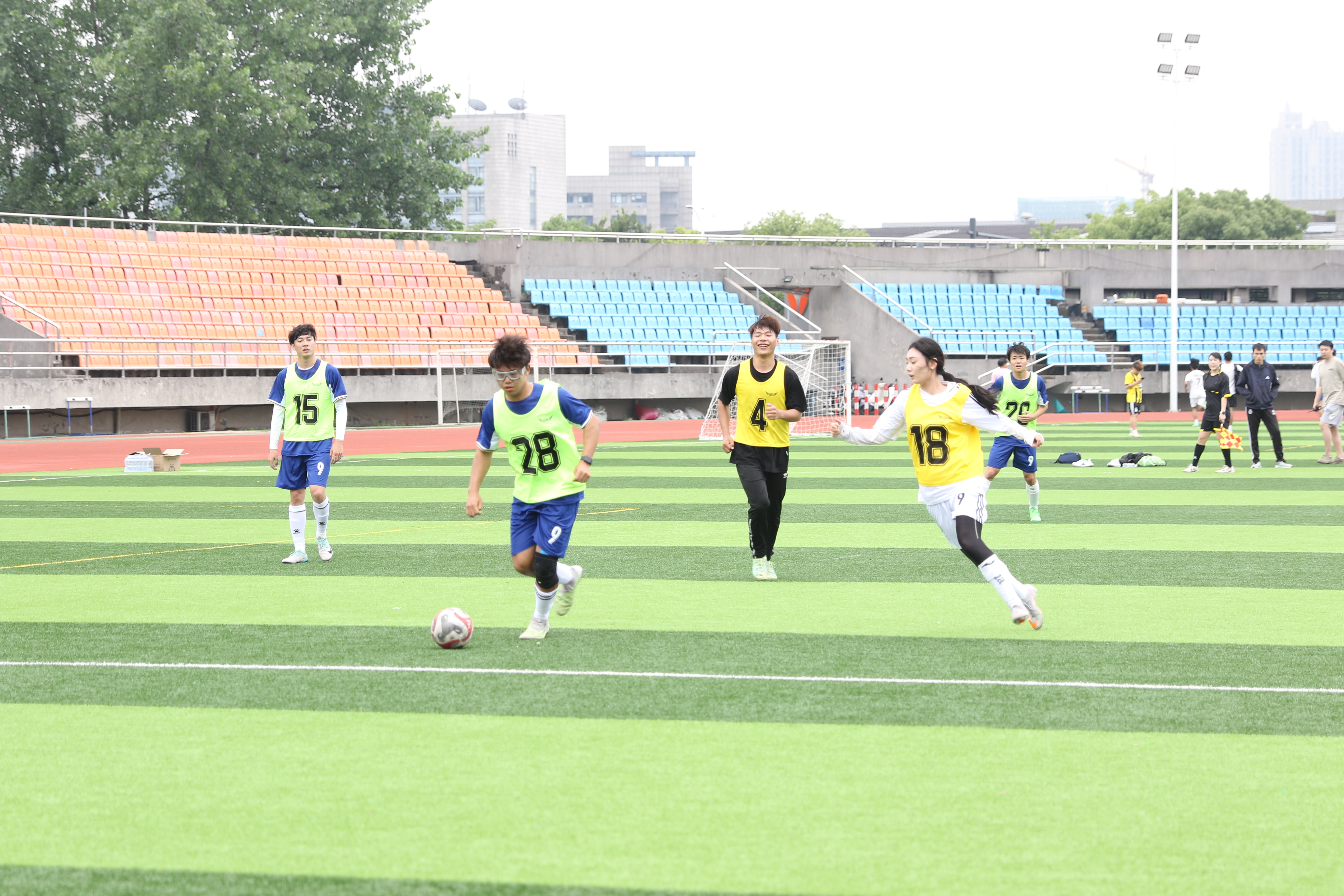 开幕式后,荣昊带领我校女子足球队与国际学院及足球俱乐部组成的代表队开展友谊赛。
