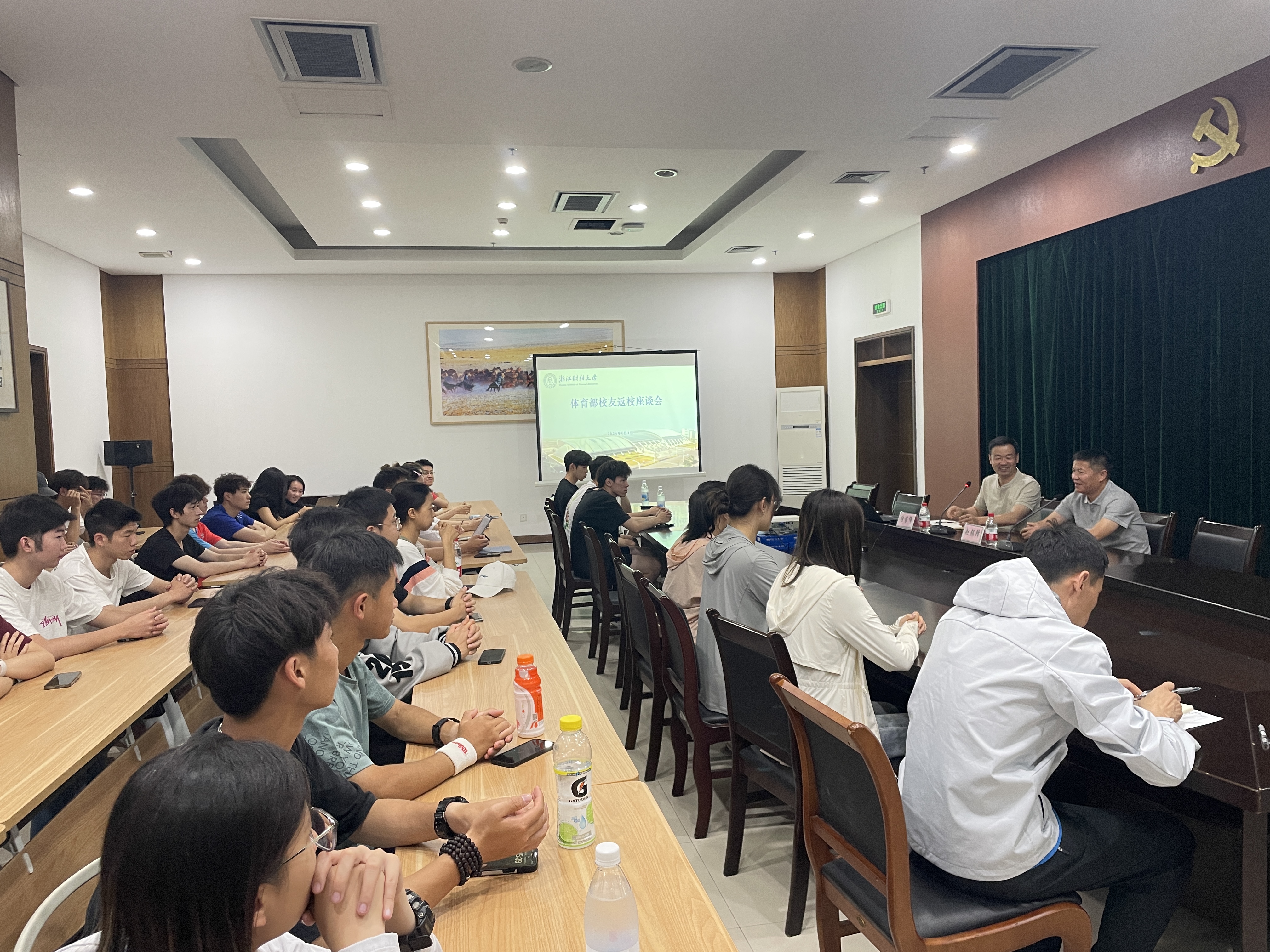 领导、相关教师及运动员代表参加座谈会。