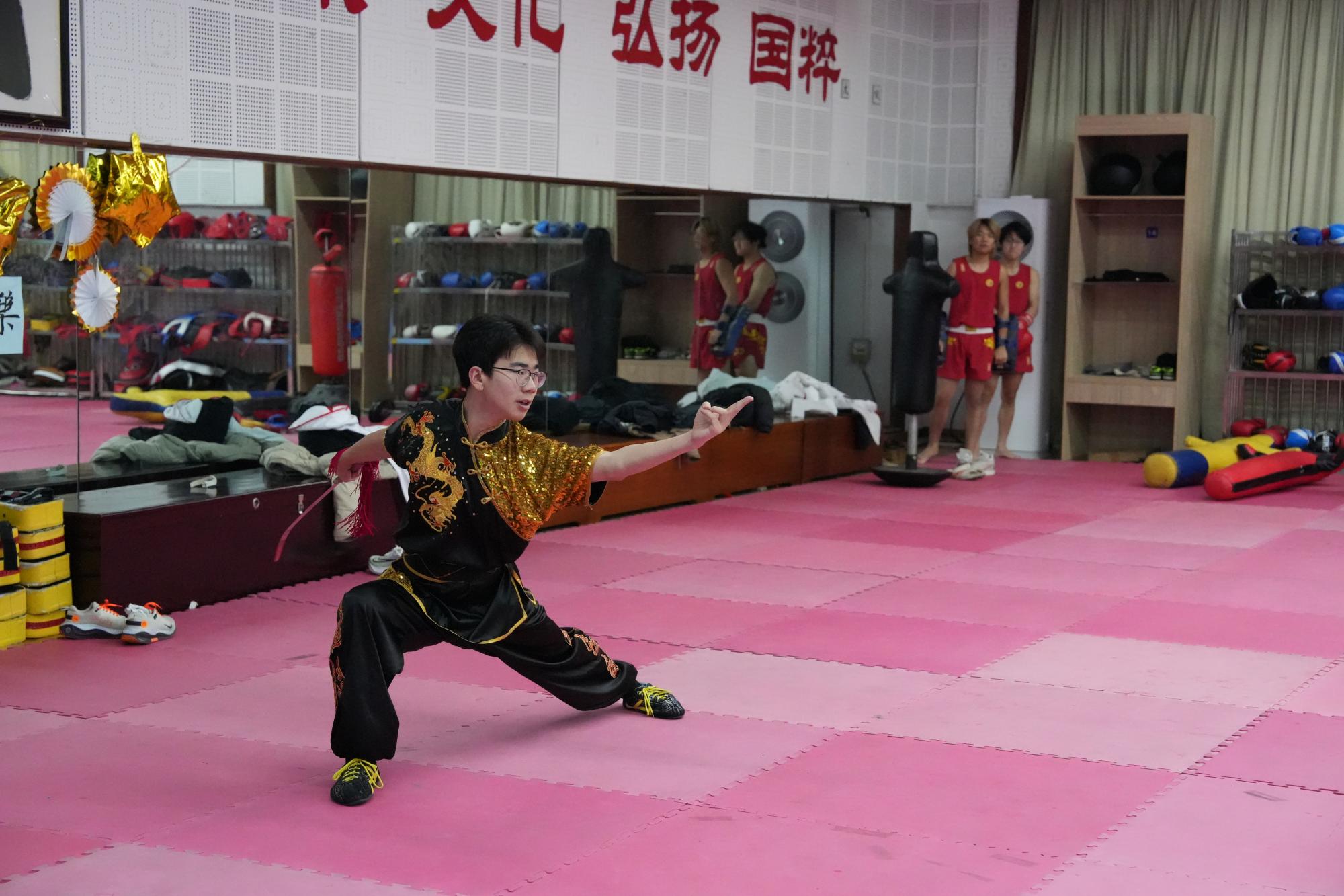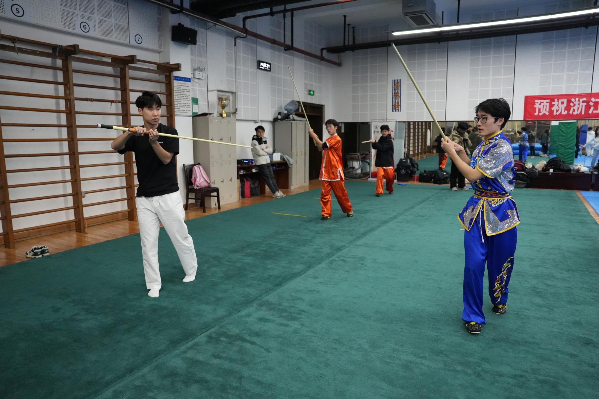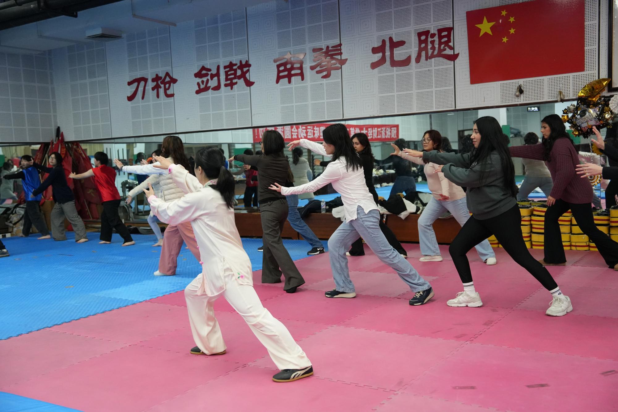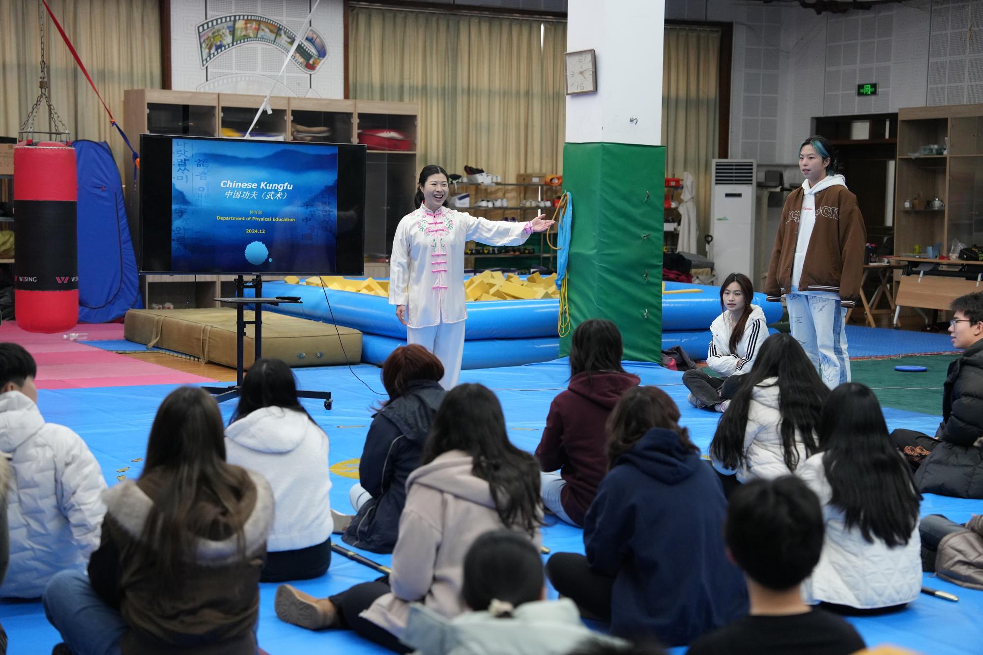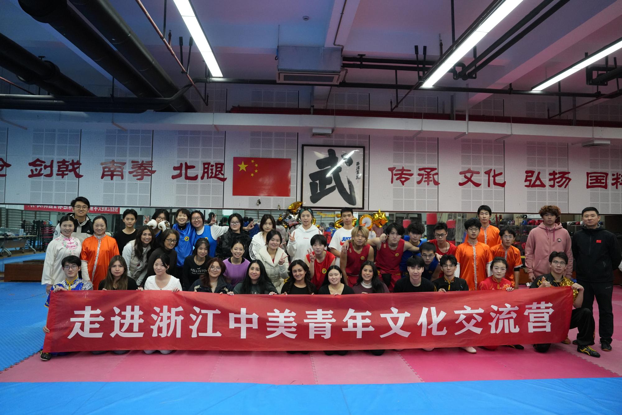 近日,11位美国加州州立大学北岭分校青年来到浙财体育馆,开展“走进浙江中美青年文化交流营”之中华武术文化交流与体验活动。