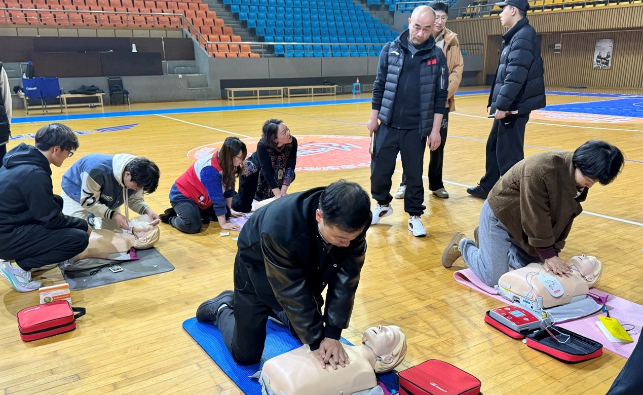 随后,培训人员现场演示了心肺复苏和AED除颤的实操步骤,强调了动作要领,大家在专业人员指导下认真进行实操演练,在巩固学习中进一步规范动作细节。