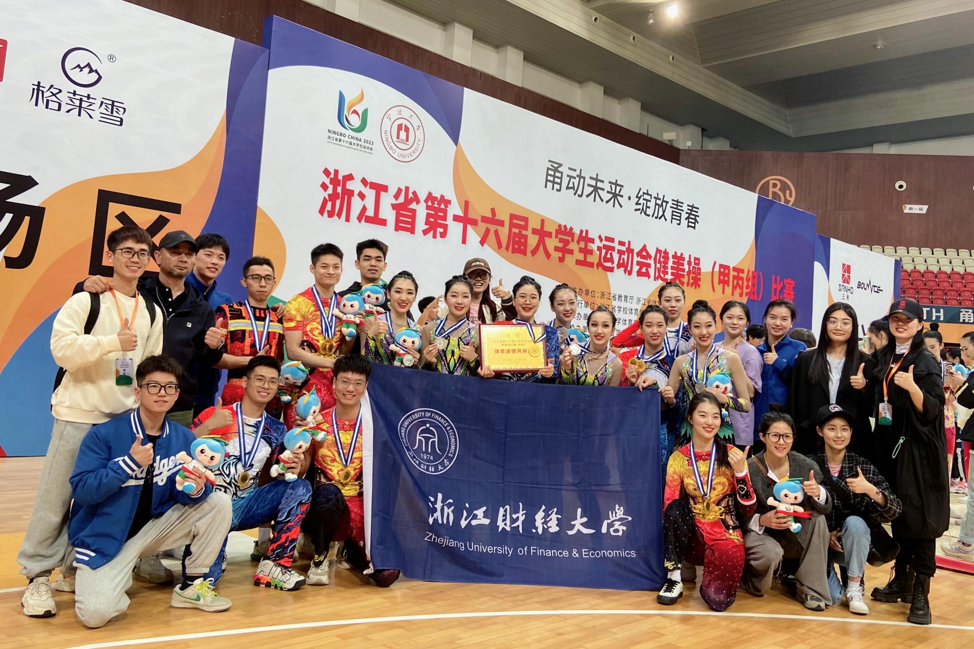4月23日至28日,浙江省第十六届大学生运动会健美操(甲丙组)比赛在宁波大学举行。我校健美操队在教练姚智勇和杨蓓蓓的指导下,表现优异,喜获佳绩。