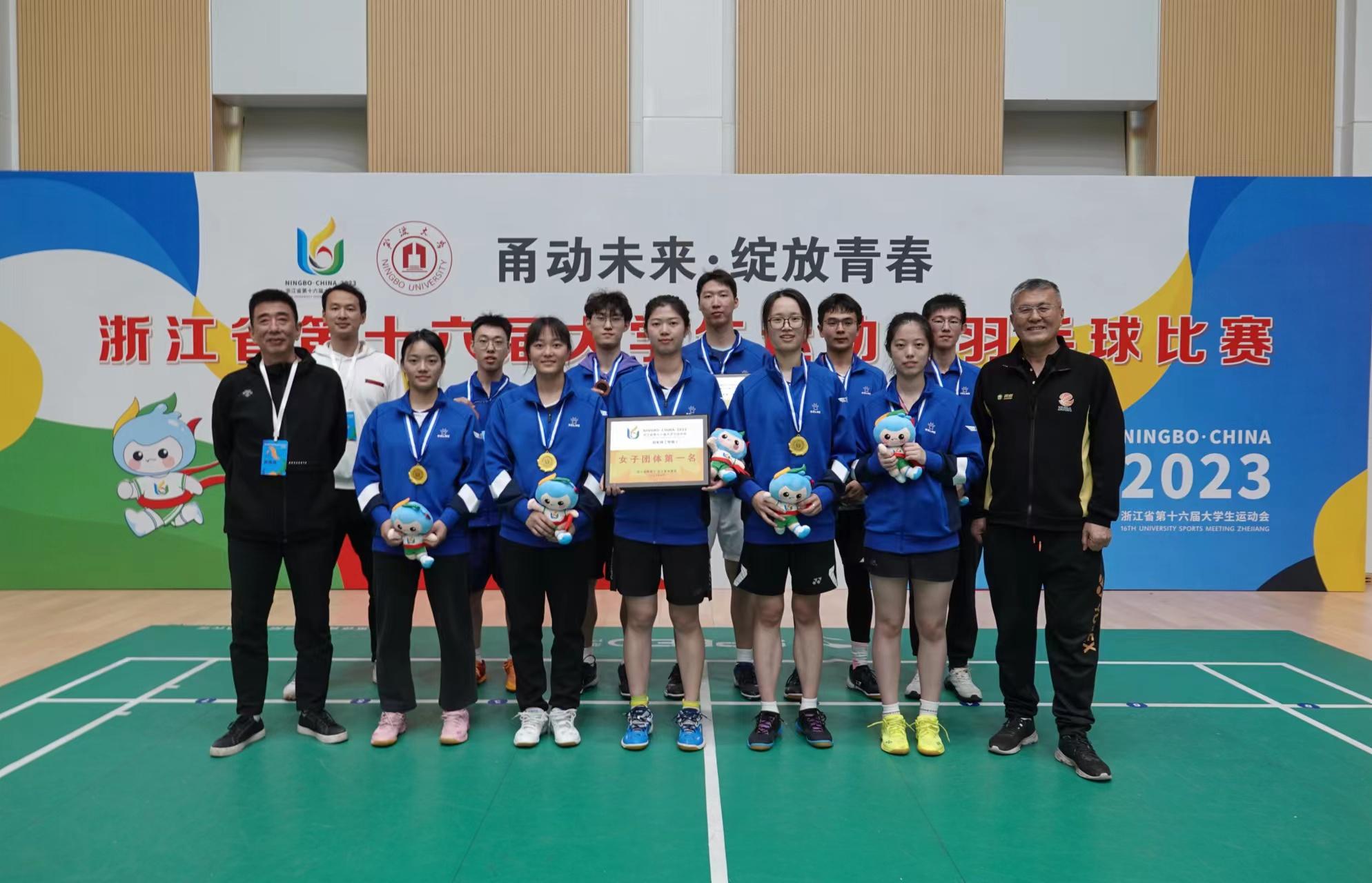 4月25日至28日,浙江省第十六届大学生运动会羽毛球(甲丙组)比赛在杭州电子科技大学下沙校区举行。我校羽毛球队在教练金辉的指导下,表现优异,创历史性佳绩。