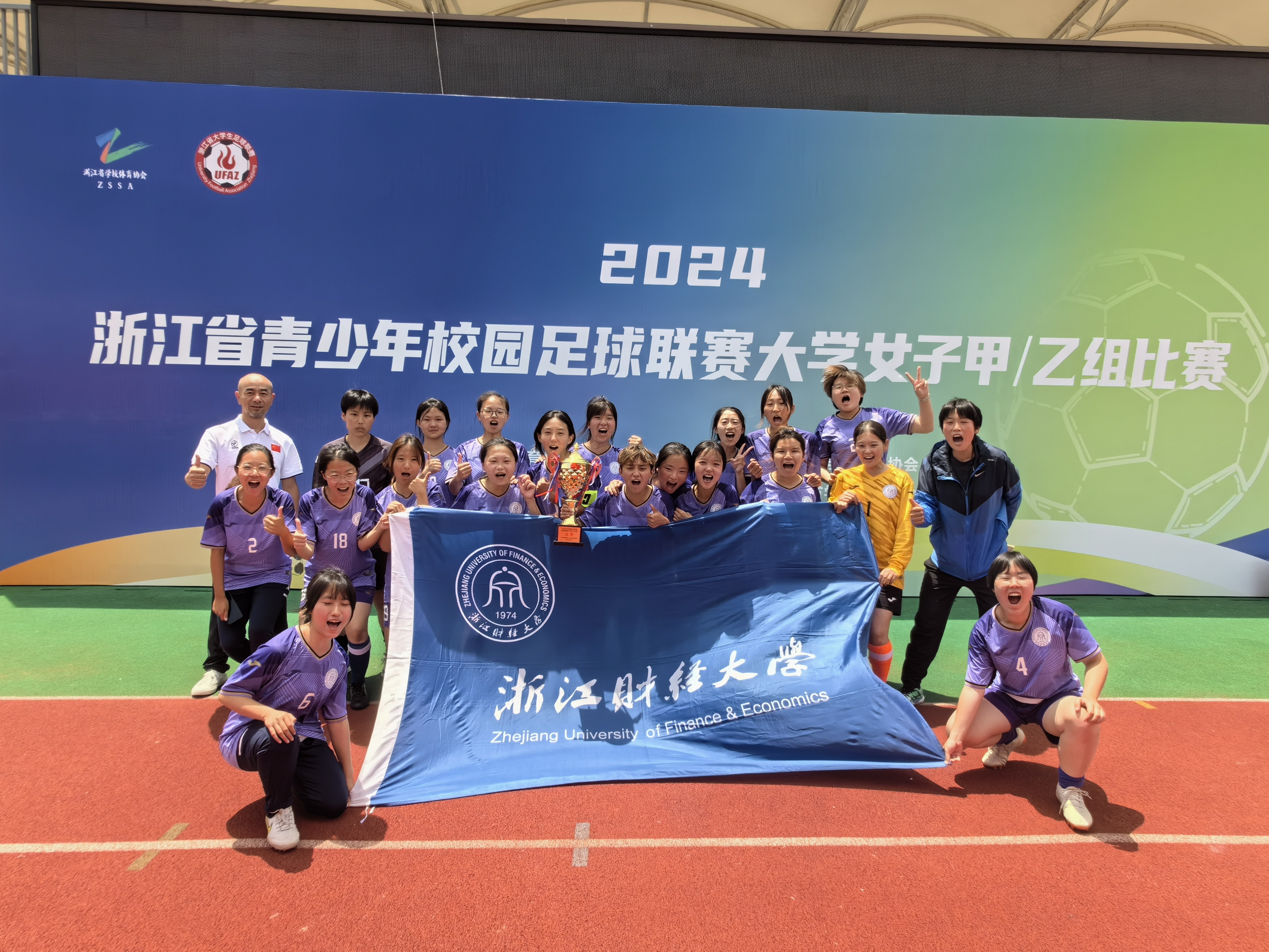 5月7日至13日,2024年浙江省青少年校园足球联赛大学女子组比赛(甲乙组)在湖州市举行。我校女足队员取得团体亚军的历史性佳绩。杜思雨获得“优秀教练员”称号,徐于然获得“最佳守门员”称号,周小川、如克也木•肉斯坦木、迪丽娜尔•哈那提、季锶晴获得“优秀运动员”称号。