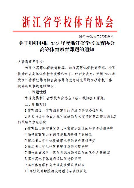 关于组织申报2022年度浙江省开车漫画 体育协会高等体育教育课题的通知