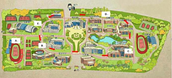 2.B、C、D、E点均有安装摄像头用于课余体育锻炼过程中的违规行为识别及取证。