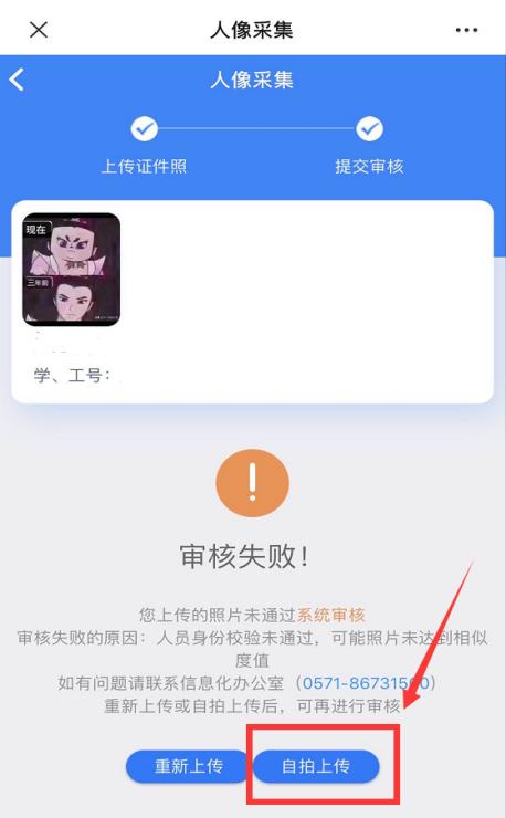 四、如果证件照上传失败,可以通过手机前置摄像头上传自拍照