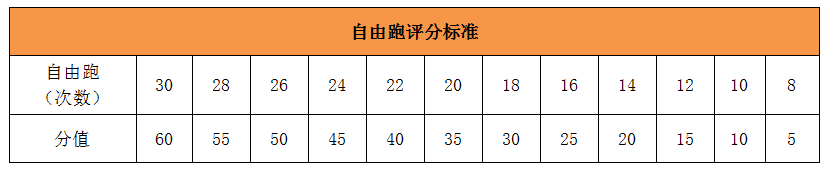 课余体育锻炼(100分)=晨跑(40分)+自由跑(60分),晨跑12次40分为必备内容(必须完成晨跑12次,否则课余体育锻炼0分),自由跑30次60分为选项内容,且晨跑与自由跑次数不能相互转换,课余体育锻炼占体育课程成绩18分。