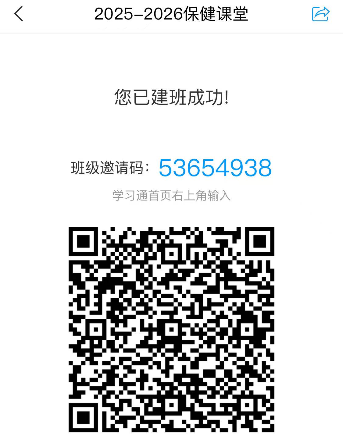 课堂教学第9周周二(11月18日)开始,请保健课堂学生(名单详见附件2,本学期体测免测申请通过后自动归入保健课堂)于第九周周二下午4:30 在西体育馆篮球馆集合,任课老师严蓓,请参加保健课堂的学生提前下载学习通APP,扫下方班级码进班,保健课堂要求及教学安排见班级群通知。