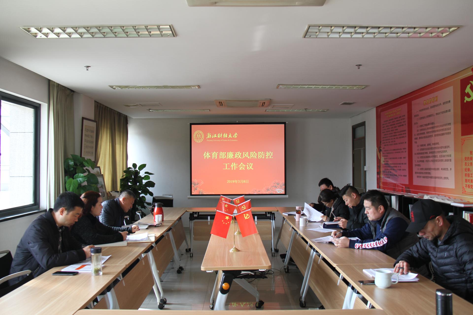 廉政风险防控工作会议在体育馆301会议召开。部门中心主任及以上领导干部参加会议。会议由党总支书记叶东惠主持。