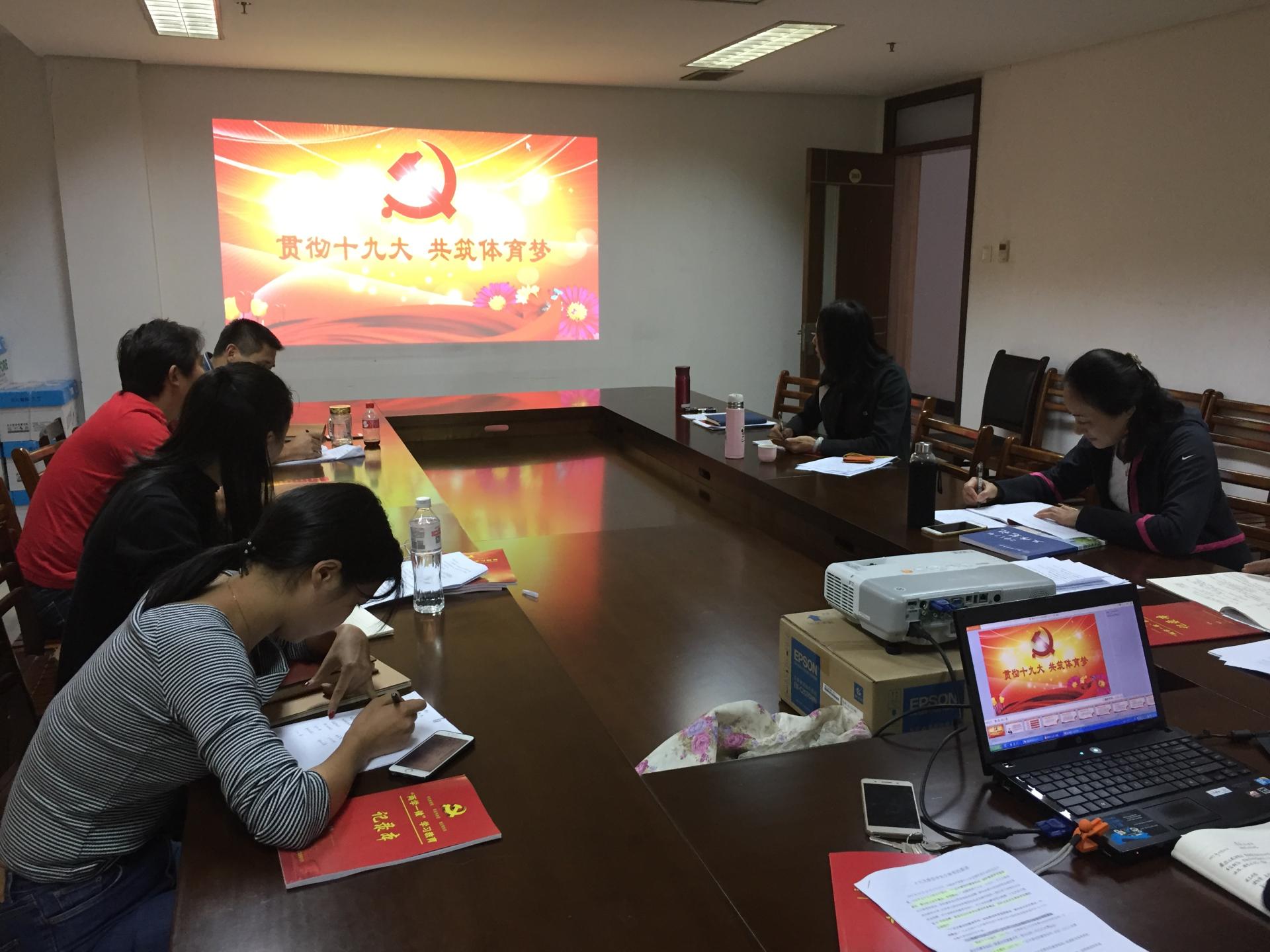 教工第二党支部于体育馆203会议室开展以“贯彻十九大 共筑体育梦”为主题的党员学习活动。
