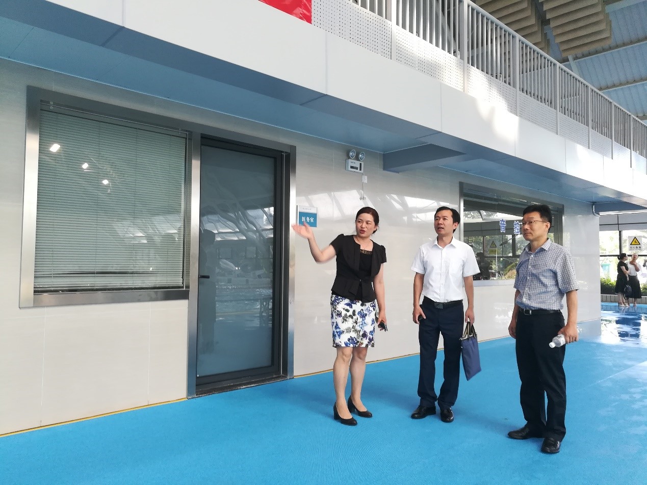 座谈会结束后,督导组一行专门视察了学生运动会游泳竞赛场馆情况。