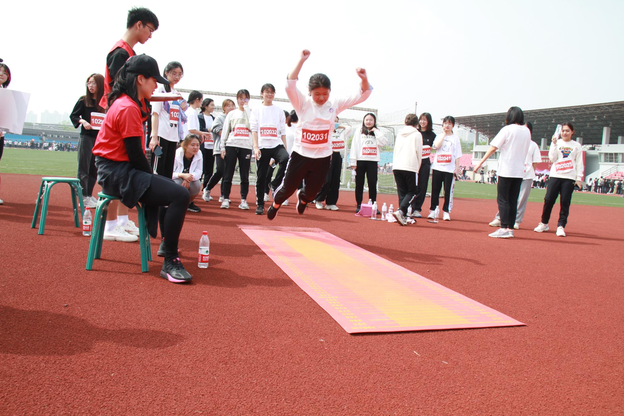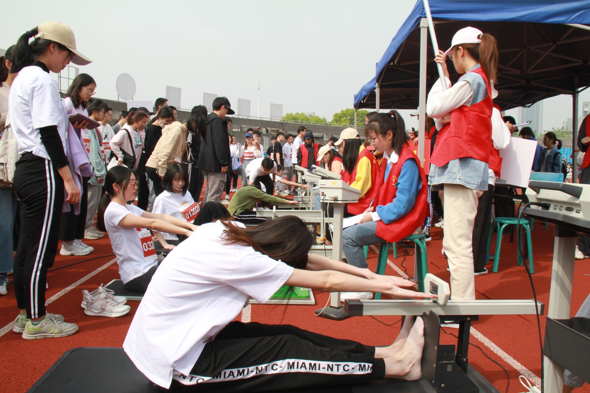 12个学院的1500余名参赛运动员分为49个小组,依次进行50米、立定跳远、坐位体前屈、仰卧起坐/引体向上、1000米/800米等项目的比拼。场上运动员们精神抖擞,你追我赶,以饱满的热情完成各项赛事。场下同学们相互加油鼓劲,掌声、欢呼声此起彼伏,充分展现了我校学子昂扬向上、团结奋进的精神风貌。