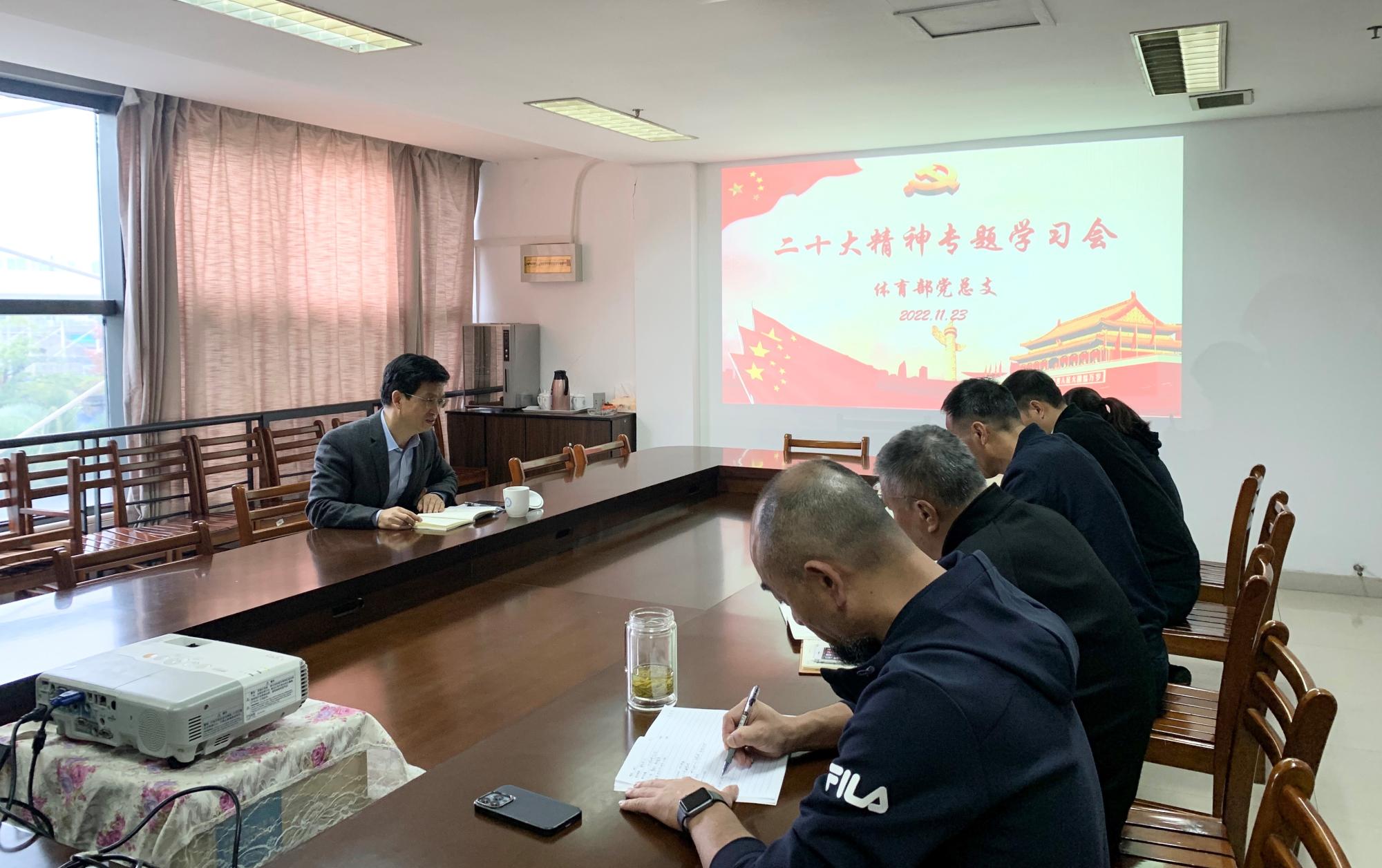 党总支开展党的二十大精神专题学习会议。党总支书记汤慧炎主持会议,党总支委员参加学习,校党委委员、副校长董进才到会指导。