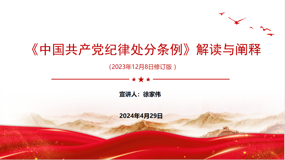 党总支书记带头为部门党员上党课,各党支部书记围绕党纪教育要求,讲授了《恪守“六大纪律” 筑牢思想根基》专题党课,详细解读了“六大纪律”的主要内容和主要违纪行为,并结合《党员干部纪律教育案例》,以案释纪,让党员们深刻认识到遵守党纪的重要性;组织党员观看了警示教育片《不守小节 难保大德》,通过典型违纪案例让党员们受警醒,明底限,知敬畏。各支部书记还在活动中强调,党员同志要原原本本地学习《条例》,做到学深悟透,内化于心,外化于行。