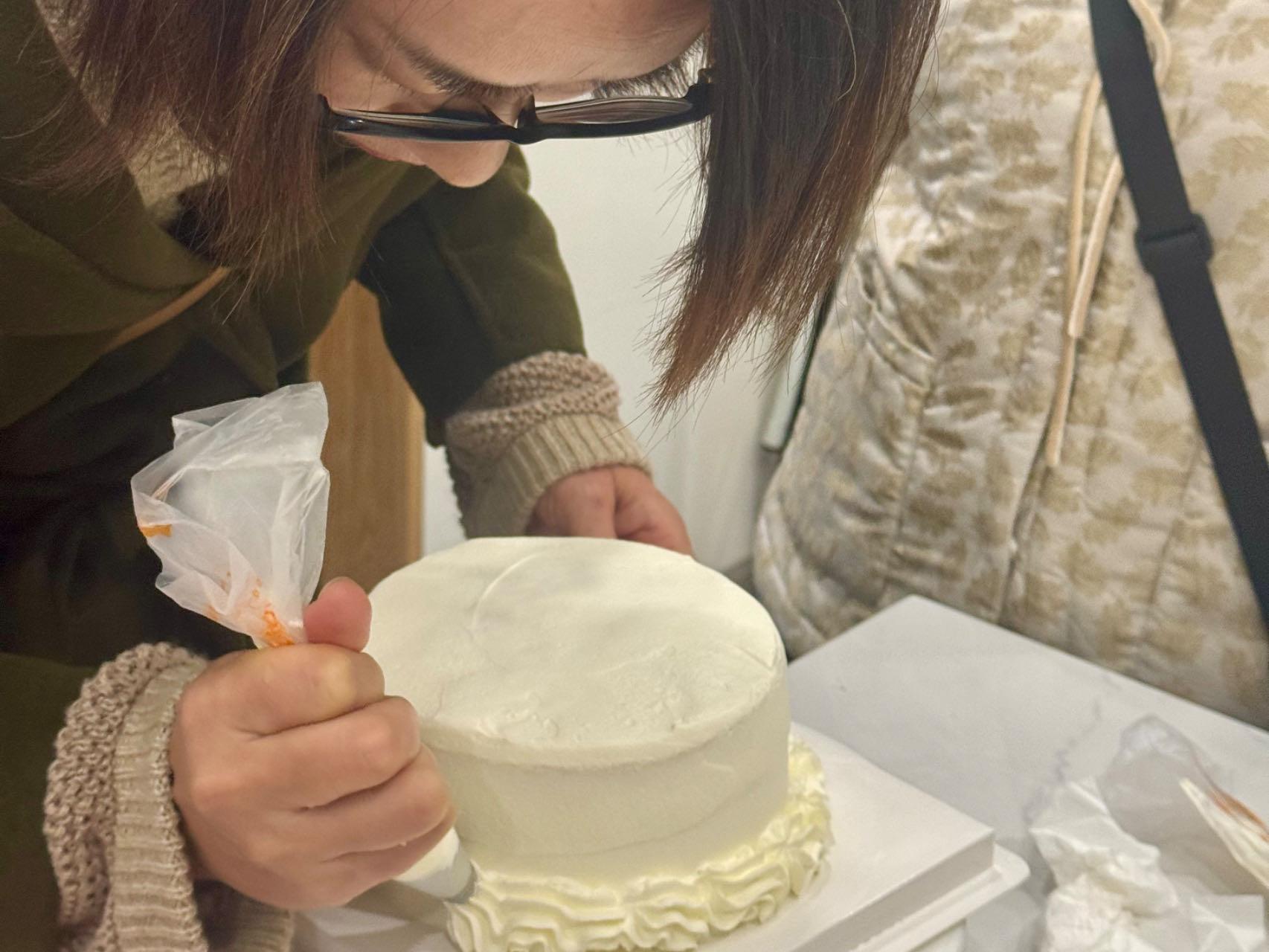 摆放水果、抹奶油、裱花装饰……女教职工们精心设计,大胆创新。在双双巧手之下,蛋糕逐渐成形,可爱精致的造型抚慰了工作的辛劳,现场弥漫着“温暖、快乐、团结、幸福”的香甜气息。