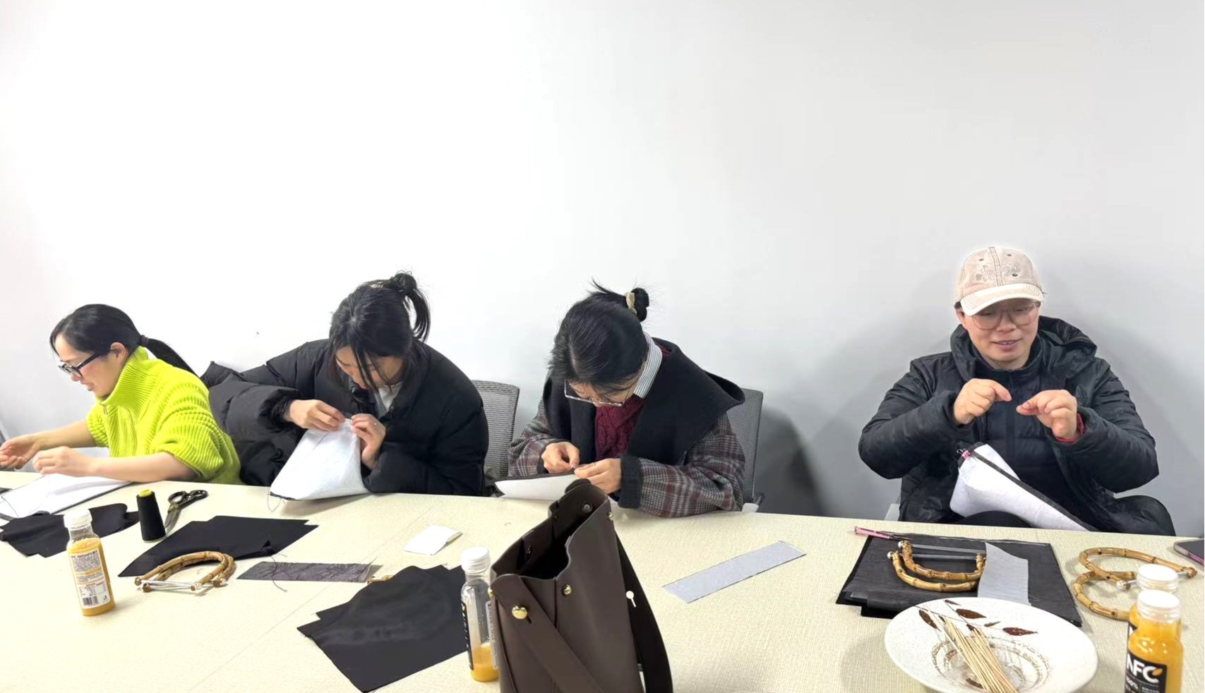 活动现场,指导老师早早备齐了布料、装饰品、针线、剪刀等材料,随后分享了设计思路,细致讲解了基本手工技艺。女教师们热情高涨,全身心投入手提包的制作,一针一线,耐心缝制,在其中收获满满乐趣与成就感。葛老师兴奋表示:“去年DIY烘焙趣味十足,今年DIY手提包同样精彩,这类活动让我们放缓节奏,尽情享受创造过程,期待来年再续!”